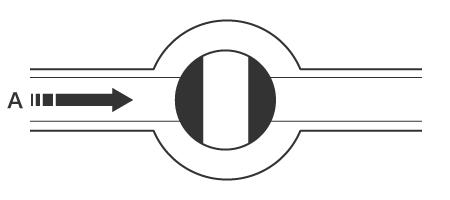 A : Écoulement du fluide - Vanne à boisseau sphérique