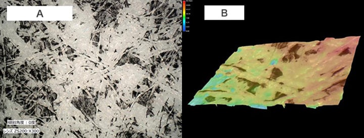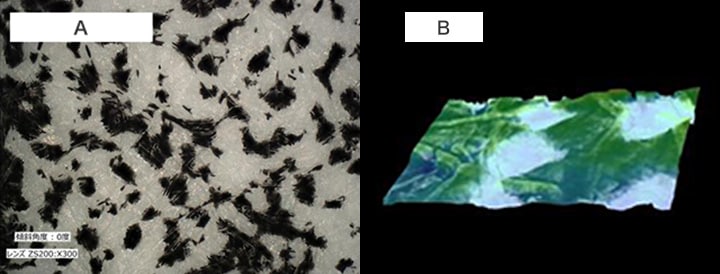 Avec la fonction de mesure automatique de surface, il suffit de spécifier la plage de mesure sur l’image pour exécuter automatiquement une analyse haute précision des particules de toner, même sur du papier d’impression ou toute autre cible à la surface irrégulière. La fonction de mesure de forme 3D permet une analyse et une comparaison intuitives en modélisant, en quelques secondes, la forme 3D de la cible avec cartographie couleur des hauteurs, à partir du profil tridimensionnel et des données de hauteur.
