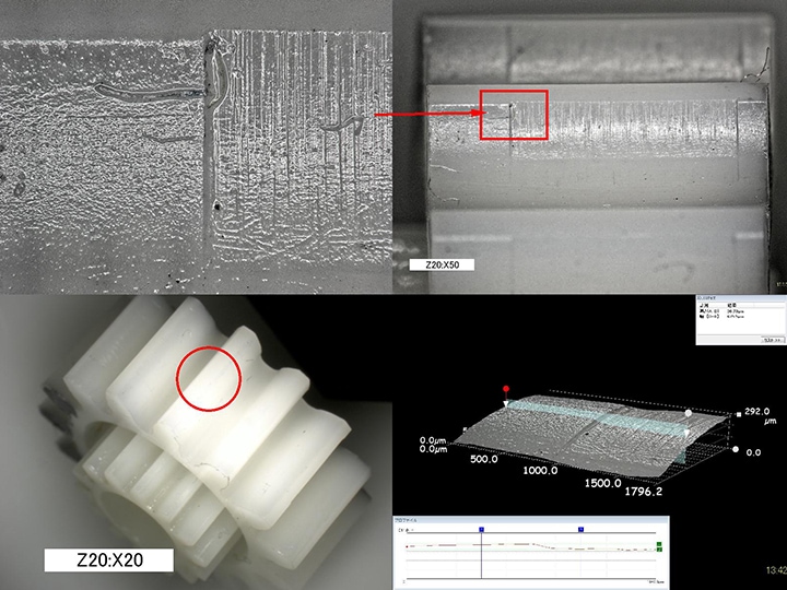 Observation et mesure 3D de la surface de contact d’une roue dentée en plastique (résine)