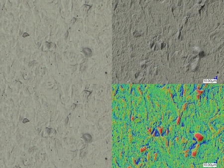 La projection thermique est un traitement de surface qui produit une couche fonctionnelle sur la surface des pièces par projection d’un matériau fondu, tel que du métal, de la céramique et du cermet. Cette technique permet notamment d’améliorer la résistance à l’usure, la résistance à la corrosion et les propriétés isolantes et de restaurer les dimensions. Retrouvez, dans cette section, des exemples d’observation et de mesure de surfaces et de revêtements appliqués par projection thermique au microscope numérique.