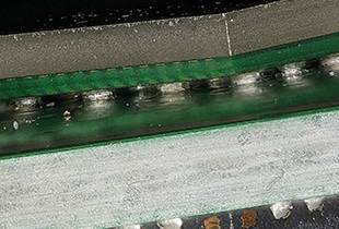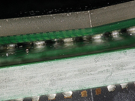L’observation avec inclinaison permet d’observer les billes d'un boîtier BGA à travers un léger jeu sur un circuit imprimé.