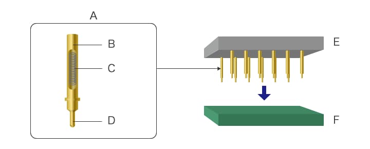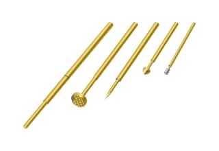 La sonde à contact se compose d’un fût, renfermant un ressort et un piston destiné au contact avec la cible. La résistance de contact à l’intérieur du fût peut être stabilisée en optimisant la pression du ressort. Les sondes à contact classiques sont constituées de pièces plaquées or afin d’éviter la corrosion et de réduire la pression de contact des parties coulissantes.