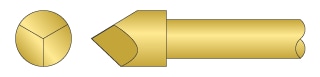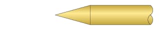 Une pointe en cône triangulaire est utilisée pour tester les éléments de forme concave, tels que les trous traversants de circuits imprimés nus.