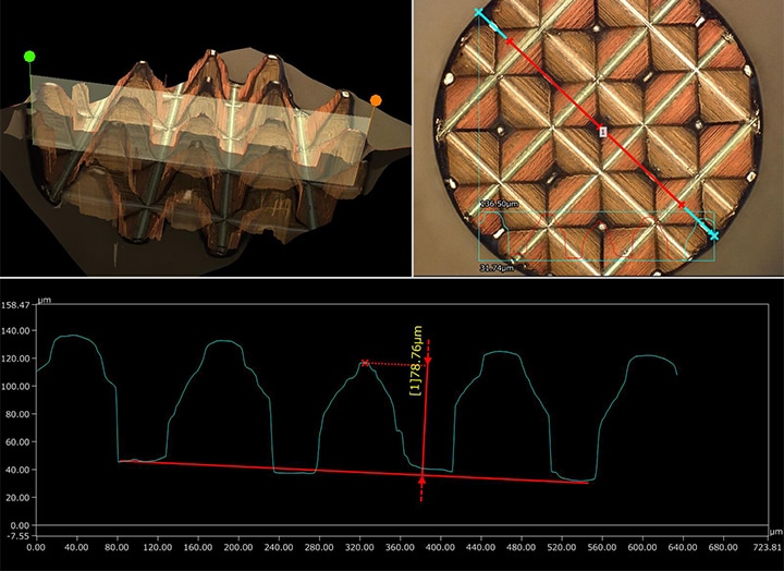 Le microscope numérique 4K Série VHX exécute des mesures 2D et 3D haute précision sur des images d’observation entièrement nettes et sans aucun contact avec la cible.