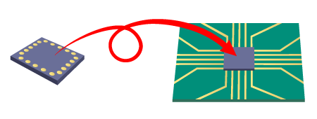 Lorsque des puces électroniques sont directement connectées à un circuit imprimé, on parle de substrat FC-BGA. Des bossages sont réalisés au niveau des électrodes d’une puce électronique qui sont ensuite connectées à celles d’un circuit imprimé. Cela permet un gain de place par rapport à la connexion par fils.