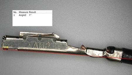 Les fonctions d’élimination des reflets et de suppression du halo du microscope numérique 4K Série VHX éliminent les reflets générés par les surfaces métalliques brillantes, pour observer et apprécier avec précision l’état de sertissage du fil.