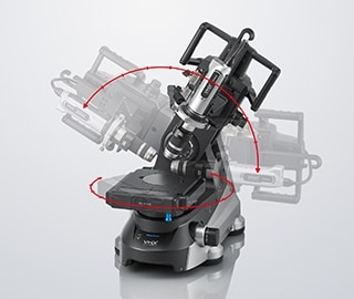 Le microscope numérique 4K Série VHX emploie un système d’observation orientable selon un angle libre et une platine motorisée XYZ haute précision, garantissant une grande liberté de mouvement de la tête et de la platine.
