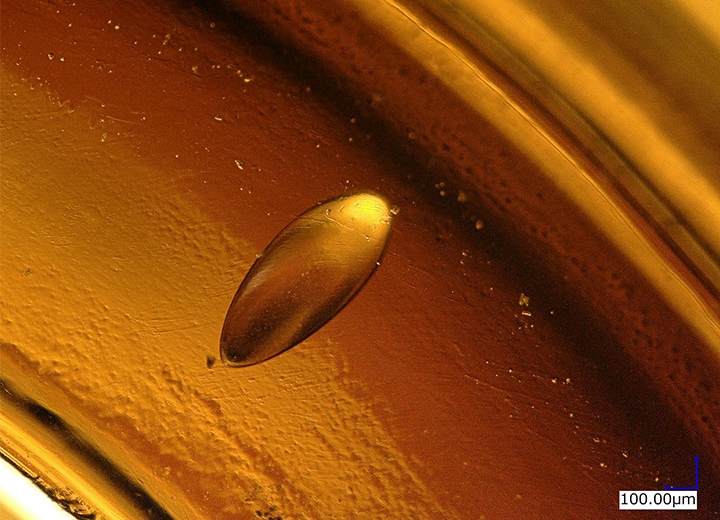 - Toute bulle d’air, fissure, rupture, etc. du verre altérera la qualité de conservation de l’ampoule et la sécurité de son contenu. Pour éviter la mise sur le marché d’ampoules défectueuses, il est indispensable de contrôler l’aspect des produits via une observation détaillée sous grossissement, afin d’identifier et d’éliminer les causes des défauts avant expédition.