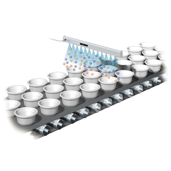 Plus la vitesse de ligne est élevée, plus la charge électrostatique est forte. Cette charge accrue génère l’adhérence d’une plus grande quantité de corps étrangers à l’intérieur des contenants, entraînant davantage de produits rejetés lors des tests qualité, donc la nécessité de répéter les contrôles et, en cas d’omission, une pluie de réclamations client. L’ioniseur prévient l’adhérence des corps étrangers.