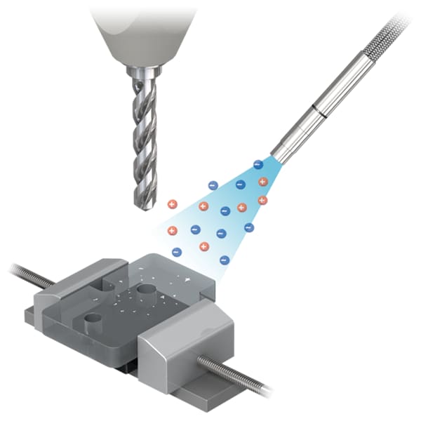 Lorsqu’une pièce en plastique est découpée ou polie, des résidus de matériau issus du procédé restent accrochés à la pièce. Afin d’éviter tout dommage, il est nécessaire d’éliminer ces résidus. L’ioniseur à soufflage d’air est, dans ce cas, tout indiqué.