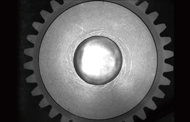 L’éclairage annulaire se reflète sur l’objet.