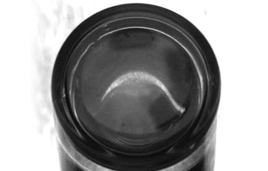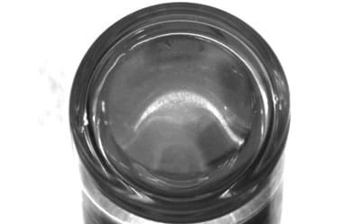 La lumière fluorescente est réfractée à l’intérieur de la bouteille, ce qui rend l’inspection du goulot difficile.