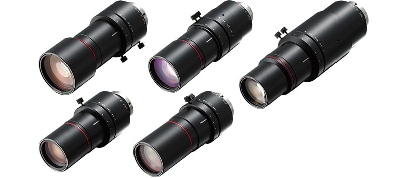 - Ces objectifs sont conçus avec un grossissement optique correspondant à 5 mégapixels (3,45 μm/pixel) et 2 mégapixels (4,4 μm/pixel).
